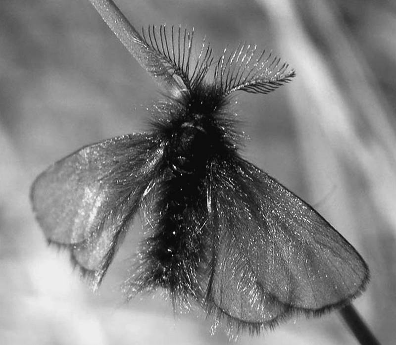 Во-первых, самки этих бабочек живут в специально построенных домиках-мешочках. Вне домиков можно встретить лишь самцов – скромно окрашенных с размахом крыльев всего около 1–3 сантиметров мотыльков с перистыми или гребневидными усиками.
