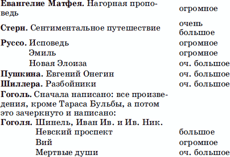 Посмотрите на списки книг, которые приводит в своем дневнике читатель Лев Толстой, оценивая их роль в своей духовной жизни. При этом он так оформляет свои записи: после общего заголовка: «Произведения, имевшие влияние на Л. Н.», идут такие разделы: «Детство до 14-ти лет или около того», «С 14-ти лет до 20-ти», «С 20-ти до 35-ти лет», «С 35-ти до 50-ти лет». Список этот он составил в 1891 году. Вот что содержат записи о читательских впечатлениях в возрасте от 14 до 20 лет: