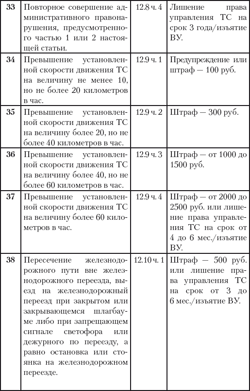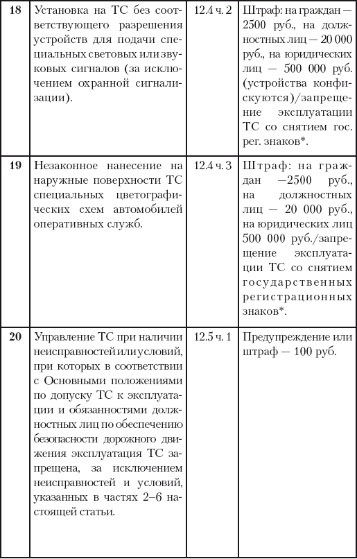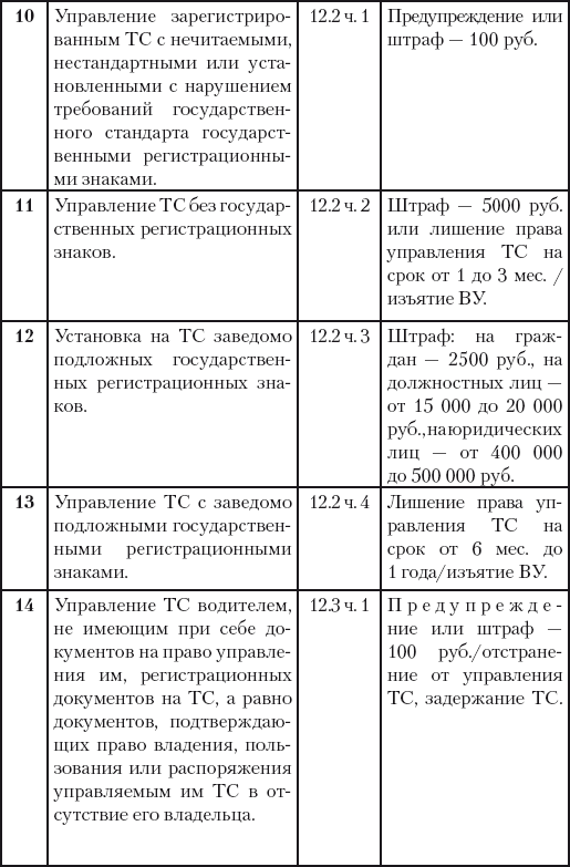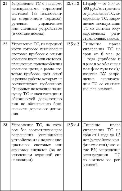 На сегодняшний момент статья 12 КоАП РФ предусматривает для этого шесть причин: