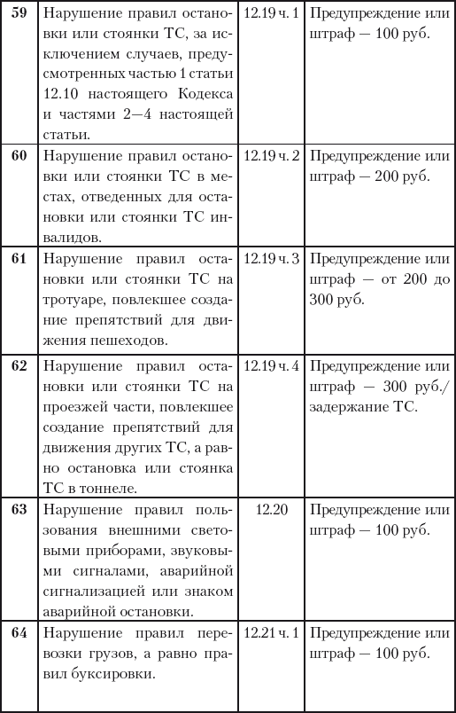 6) нарушение правил остановки или стоянки на проезжей части, повлекшее создание препятствия для движения других машин, равно как и за остановку или стоянку в тоннеле.