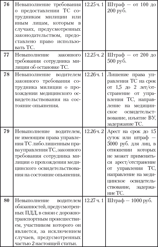 4) невыполнение законного требования инспектора о прохождении медицинского освидетельствования на состояние опьянения;