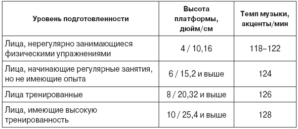 Высота платформы и темп музыкального сопровождения для людей различной подготовленности