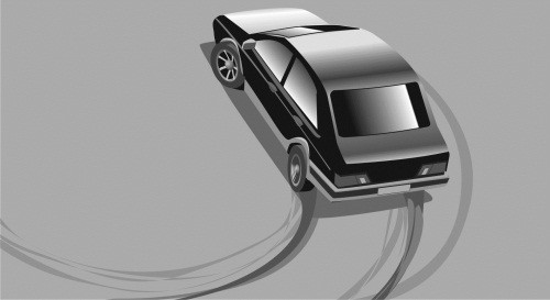 2. Перейти во вращение вокруг передних колес за счет скольжения задних (илл. 2). Для этого оставьте включенным ручной тормоз. Если же вы создали ритмический занос вращением руля, то ничего дополнительного делать не нужно – продолжайте вращать руль, и машина развернется сама.