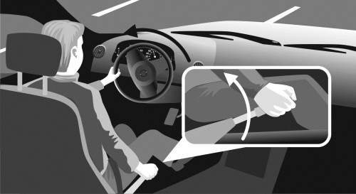 • захватите руль двумя руками и разведите локти в стороны.