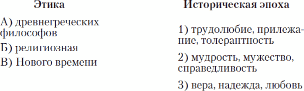 В3. Установите соответствие между этикой и исторической эпохой: к каждой позиции, данной в первом столбце, подберите соответствующую позицию из второго столбца.