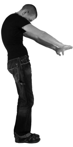а) Плечи движутся вперёд навстречу друг другу. Спина при этом округлена, подбородок опущен к груди (фото 9).