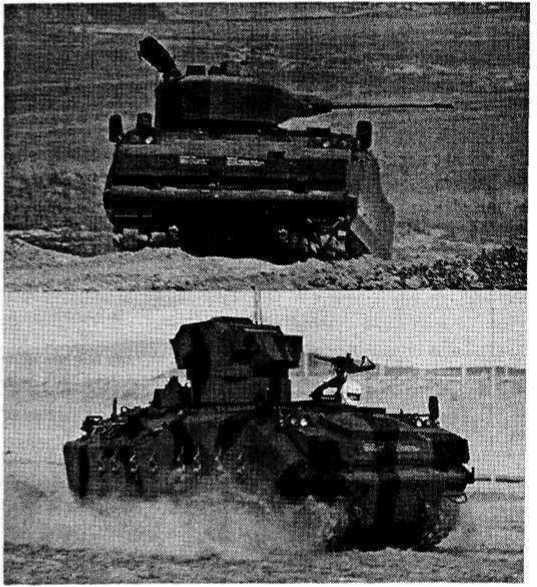 Перспективный БТР AIFV с 25-мм скорострельной пушкой (вверху) и разведывательная машина A TV с 12,7-мм пулеметом (внизу)