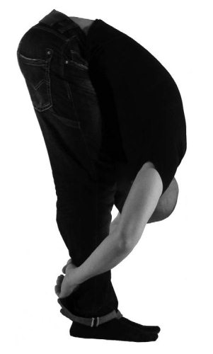 3. Прогиб в наклоне. Это так называемая парадоксальная растяжка. Сохраняя наклон, поставьте руки на пол либо упритесь выпрямленными руками чуть выше коленей. Попытайтесь прогнуть спину, удерживая положение от 15 секунд до минуты (фото 35).
