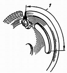 Фиг. 91. Уменьшение диаметра колеса. Пунктирные линии показывают срез.
