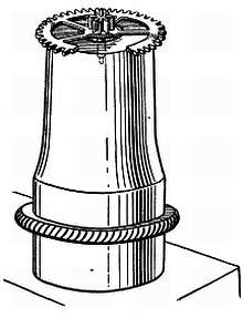 Фиг. 90. Латунная подставка для установки колеса. В вырезе колеса виден правильный диаметр подставки.