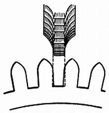 Фиг. 92. Уменьшение толщины зубьев. Пунктирная линия показывает срез.