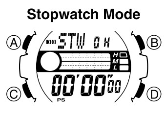 Режим Секундомера позволяет регистрировать отдельные отрезки времени, время с промежуточным результатом и время двойного финиша. Рабочий Диапазон Общего Измеряемого Времени ограничен 23 часами 59 минутами, 59.99 секундами.