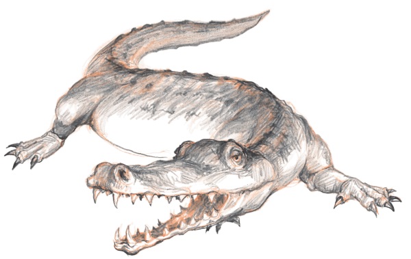 Название свое от шафрана (Croceus) берет, ибо цвет имеет шафранный. Обитает в реке Нил, длины даже двадцати локтей достигает, а вооружен грозными когтями и зубьями. Ночами в воде плавает, днями же в прибрежных зарослях спит. Говорят, ежели кого сожрет, то лицемерные слезы проливает, как вроде бы ему жаль. Потому-то обыкновенно лицемеров всяческих, а особливо ксендзов, с крокодилами сравнивать принято.