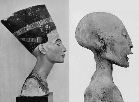 Бюст Нефертити и ее предполагаемая мумия