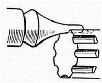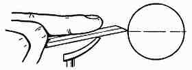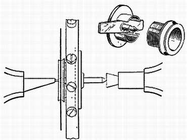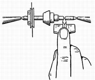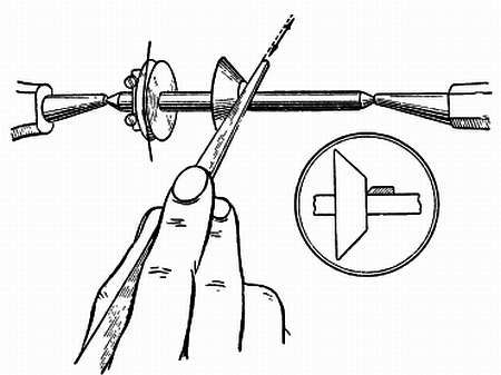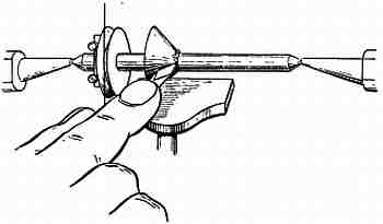 Угол между торцом конуса и участком оси для посадки ролика должен быть абсолютно прямым. Для этого штихель держат так, как показано на фиг. 249.
