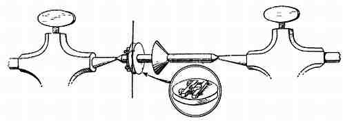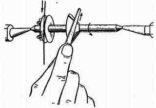 Оправки бывают различных размеров. Выбирают подходящую оправку и закрепляют ее на оси; конский волос прокладывают один раз вокруг шкива. Конский волос лучше хлопчатобумажной нити, так как он не истирается. Конский волос можно заменить хлопчатобумажной нитью, натерев ее пчелиным воском. Лук, на который натянут конский волос, изготавливается из китового уса и сначала бывает очень жесткий. Лук должен быть настолько прочный, чтобы волос был туго натянут и в то же время мог скользить по шкиву оправки. Ось баланса устанавливают между подвижными центрами без зазора, но в то же время она должна быть достаточно свободной. После этого закрепляют подвижные центры и наносят небольшое количество масла на каждую точку вращения.
