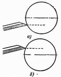 Если резание производится ниже линии центров, есть опасность поломать деталь или нарушить центровку (фиг. 231).