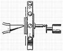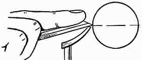 Если по какой-либо причине нежелательно взять за образец старую ось, то при определении размеров оси баланса необходимо провести измерения в самом механизме. Наиболее удобным измерительным прибором является штангенциркуль (фиг. 80).