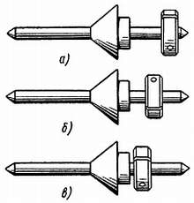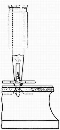 Расклепку следует производить одним-двумя уверенными, легкими ударами. Аналогичным пуансоном с полированным рабочим концом наносят окончательный удар (фиг. 266).