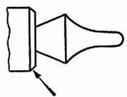 Фиг. 263. Полировальный инструмент слишком малого размера. На цапфе образуется впадина.