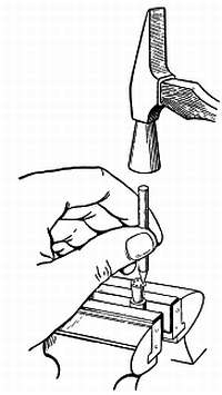 Конец прутка закаливают с последующим отпуском и окалину зачищают наждачным бруском.