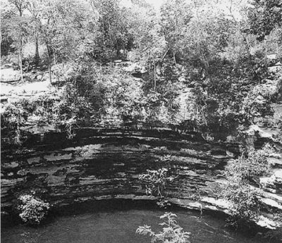 Древний город майя Чичен-Ица на полуострове Юкатан привлекает туристов своими прекрасными архитектурными сооружениями. Особенно сильное впечатление производит ступенчатая Пирамида Пернатого змея – храм Кукулькана. Однако не меньшей популярностью среди туристов пользуется Священный сенот – так называемый Колодец смерти, или Колодец мертвых девственниц, представляющий собой естественную карстовую воронку диаметром около 60 м и примерно такой же глубины.