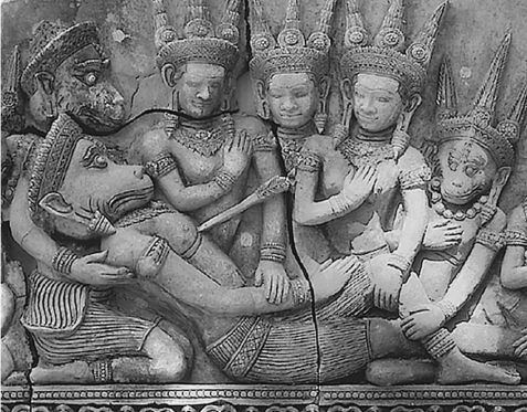 Умирающий царь обезьян Хануман. Средневековый рельеф из Таиланда