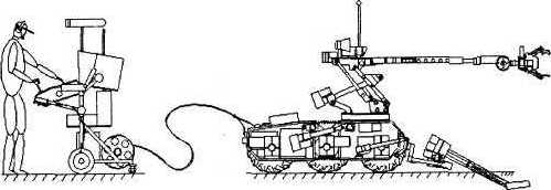 Идея заменить людей на полях сражений роботами витала в воздухе уже давно. На эту тему были написаны десятки научно-фантастических произведений, первые из которых появились в 20-х годах нашего столетия. Пионерами автоматизации военной техники были советские ученые, которые еще в 30-х годах создали дистанционно пилотируемый вариант бомбардировщика ТБ-1, способный совершать полет «по полному циклу» (взлет — полет по маршруту — сброс бомб — возвращение на базу — посадка) с минимальным вмешательством человека. По ряду причин эти работы так и не вышли из стадии экспериментальных. Первая попытка боевого применения безэкипажной машины в качестве носителя оружия, по-видимому, была предпринята в 1945 г. при обороне Берлина, когда немцы оборудовали танкетки В-4 установками для стрельбы реактивными гранатами. Ничего серьезного, однако, до последнего времени создано не было, и люди привыкли считать, что военные роботы-солдаты относятся к области чистого вымысла. И вдруг оказалось, что они могут стать реальностью уже в ближайшем времени.