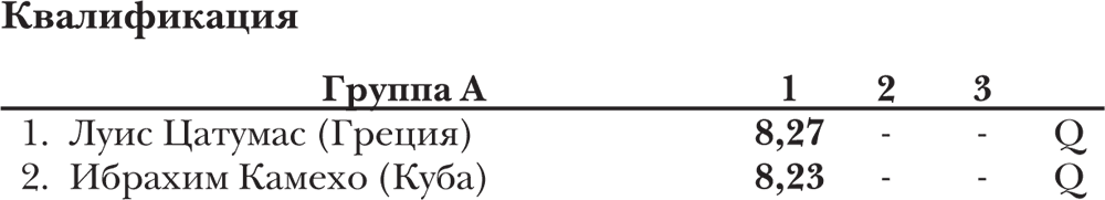 В финале успешный в квалификации (8,27) грек Луис Цатумас мог бы получить с этим результатом серебро, но сделал три заступа.