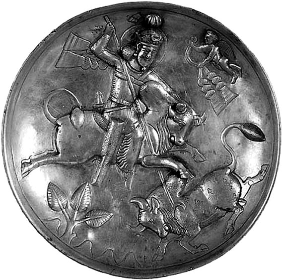 Исследователи нового времени обратили внимание на то, что в бортиках, по крайней мере, 40 серебряных блюд, найденных в Верхнем Прикамье, пробиты небольшие отверстия, с помощью которых эти блюда подвешивались для совершения обрядов. Каких? На этот вопрос дали ответ этнографы. Оказывается, западносибирские угры («юрга») использовали серебряную иранскую и византийскую посуду при совершении обрядов, посвященных духу Мир Сусне Хум – буквально переводится как «Смотрящий-За-Людьми-Человек». Этот дух, по верованиям угров, самый младший, седьмой сын верховного божества Нуми Торума, покровитель охотников, посылающий им дичь. Его отождествляли с солнцем, поэтому во время совершения обрядов сверкающие диски серебряных блюд символизировали небесное светило. Во время молений о ниспослании богатой добычи лесные охотники поклонялись серебряным блюдам, изготовленным ремесленниками в далеких Иране и Византии…