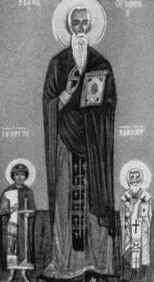 «Еван, Георгий и Власий». Икона. 2-я половина 13 в. Русский музей. Ленинград.