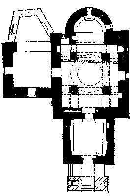Новгородская школа. Церковь Успения на Волотовом поле, близ Новгорода. 1352. План.