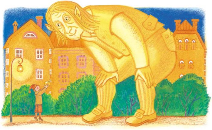 Однажды в библиотеке я взял книжку «Тысяча и одна ночь». В ней рассказывалось о духе, который сидел в бутылке. Но это было в далёкой-далёкой Аравии много тысяч лет назад. Совсем другое дело – простая бутылка из-под пива в парке Тегнера. Разве могут сидеть духи в бутылках стокгольмских пивоварен! Но в этой бутылке на самом деле кто-то был. Честное слово, там сидел дух! И ему не терпелось выйти из заточения. Он показывал на деревяшку, закупорившую бутылку, и умоляюще смотрел на меня. Мне не приходилось иметь дело с духами, и было чуточку боязно вынуть из бутылочного горлышка деревяшку. Наконец я всё же решился – дух со страшным шумом вылетел из бутылки; в один миг он начал расти и стал огромным-преогромным. Самые высокие дома вокруг парка Тегнера оказались ему по плечо. С духами всегда так: они то сжимаются и становятся такими маленькими, что умещаются в бутылке, то мгновенно вырастают выше домов.