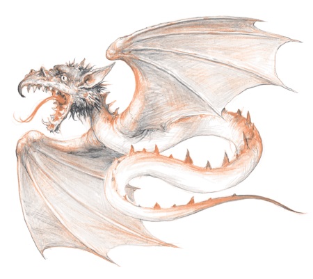 Летающий дракон, по образу змея ног не имеющий, а богатый лишь парой крыльев, по обеим сторонам тела расположенных, откуда и идет его греческое название. Грозный сие есть людоед, что видно хотя бы по гербам Сфорцев и Висконтиев, на коих оный амфиптерий человека пожирающим изображен.