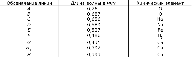 Спектры оптические. Линии поглощения (фраунгоферовы линии) в спектре Солнца.