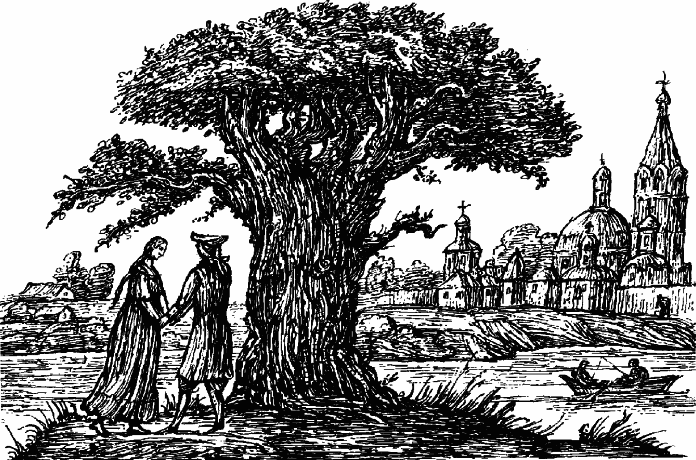 После сего Эраст и Лиза, боясь не сдержать слова своего, всякий вечер виделись (тогда, как Лизина мать ложилась спать) или на берегу реки, или в берёзовой роще, но всего чаще под тению столетних дубов (саженях в осьмидесяти от хижины) – дубов, осеняющих глубокий чистый пруд, ещё в древние времена ископанный. Там часто тихая луна, сквозь зелёные ветви, посребряла лучами своими светлые Лизины волосы, которыми играли зефиры и рука милого друга; часто лучи сии освещали в глазах нежной Лизы блестящую слезу любви, осушаемую всегда Эрастовым поцелуем. Они обнимались – но целомудренная, стыдливая Цинтия не скрывалась от них за облако: чисты и непорочны были их объятия. «Когда ты, – говорила Лиза Эрасту, – когда ты скажешь мне: „Люблю тебя, друг мой!“, когда прижмёшь меня к своему сердцу и взглянешь на меня умильными своими глазами, ах! тогда бывает мне так хорошо, так хорошо, что я себя забываю, забываю всё, кроме Эраста. Чудно! Чудно, мой друг, что я, не знав тебя, могла жить спокойно и весело! Теперь мне это непонятно, теперь думаю, что без тебя жизнь не жизнь, а грусть и скука. Без глаз твоих тёмен светлый месяц; без твоего голоса скучен соловей поющий; без твоего дыхания ветерок мне неприятен». Эраст восхищался своей пастушкой – так называл Лизу – и, видя, сколь она любит его, казался сам себе любезнее. Все блестящие забавы большого света представлялись ему ничтожными в сравнении с теми удовольствиями, которыми страстная дружба невинной души питала сердце его. С отвращением помышлял он о презрительном сладострастии, которым прежде упивались его чувства. «Я буду жить с Лизою, как брат с сестрою, – думал он, – не употреблю во зло любви её и буду всегда счастлив!» Безрассудный молодой человек! Знаешь ли ты своё сердце? Всегда ли можешь отвечать за свои движения? Всегда ли рассудок есть царь чувств твоих? <…>