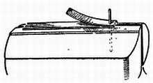 На фиг. 102 показано еще одно приспособление для установки пружины. Пружина навивается на втулку диаметром меньше часового барабана. С этой втулки пружина выталкивается в барабан при помощи толкателя.
