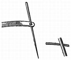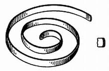 Отрезок проволоки, зажатый в тиски, обрезают вплотную к пружине, опиливают до того, пока выступает лишь небольшая его часть, которую расклепывают. После этого вынимают из тисков, обрезают другой конец также вплотную к пружине и опиливают и расклепывают, как было сказано выше.