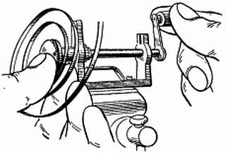 Фиг. 102. Приспособление для установки пружины в барабан американской конструкции.