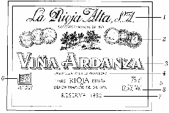 В самой нижней строчке посередине этикетки указаны год и качество («Crianza» - вино, выдержанное в деревянной емкости, «Reserva» - долгая выдержка, «Gran Reserva» - очень долгая выдержка в дубовой бочке) (рис. 3.7).