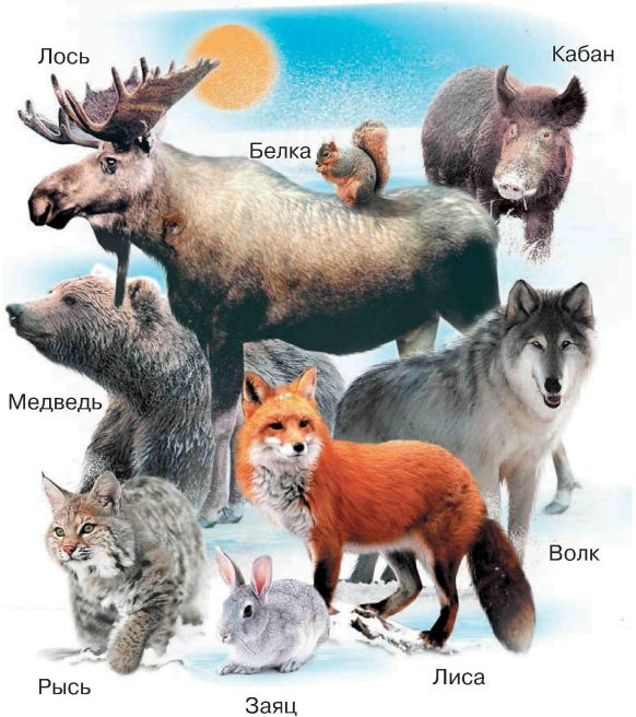 Среди млекопитающих встречаются хищники – рыси, волки, лисицы, растительноядные – лоси, зайцы, белки и всеядные – медведи и кабаны.