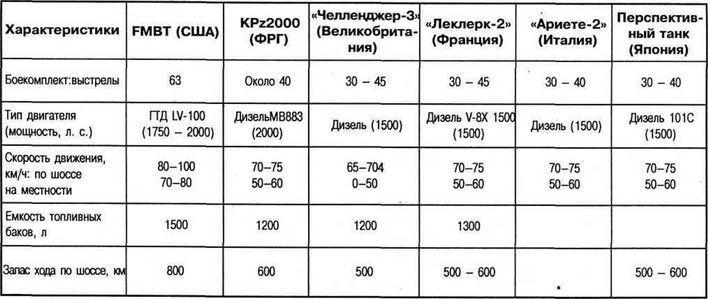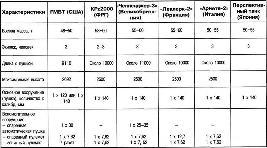 Тактико-технические данные перспективных основных боевых танков приведены ниже.