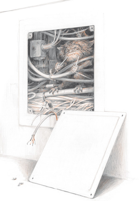 Послевоенные годы – одна непрекращающаяся битва техников с гремлинами. Битва эта, следует признать честно и откровенно, проиграна техниками по всей линии: сейчас не найти ни одного устройства, которое действовало бы безотказно, в процессе изготовления каждое оказывается подпорченным гремлинами, и если даже что-то изготовить все же удается, то гремлин постарается приложить все усилия к тому, чтобы в эксплуатации оно отказало. Рай для гремлинов – домашнее хозяйство. Именно гремлины и никто другой повинны в том, что бутерброд всегда падает маслом вниз, рыба пригорает к непригораемому тефлоновому покрытию сковороды, а яйцо, которое варишь с хронометром в руке, оказывается либо сырым, либо сваренным вкрутую. Именно из-за ГЭ по экрану телевизора сыплется «снег», или же он превращается в puzzl как раз в тот момент, когда мы записываем на видео нужный фильм. Из-за гремлина (проблема, опасная скорее только для дам) вибратор искрит и заедает. У мужчин гремлин выводит из строя стартеры, забивает выхлопные трубы, крадет один носок и поддевает колпачки бутылок, выпуская газ и превращая пиво в отвратительную бурду.