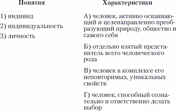 В2. Установите соответствие между понятиями и характеристиками: к каждой позиции, данной в первом столбце, подберите соответствующую позицию из второго столбца.