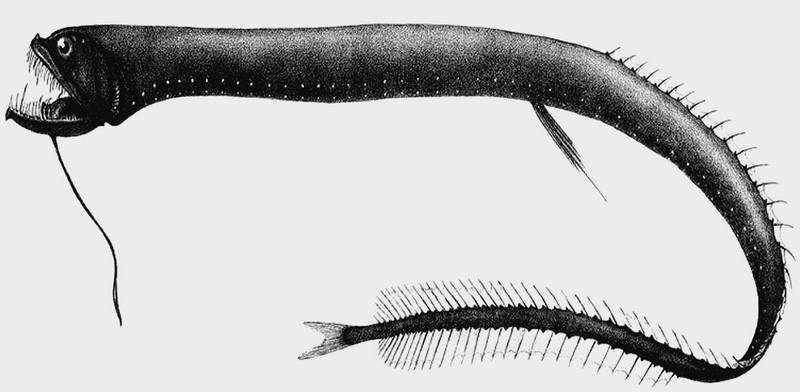 Идиакант, или «черная рыба-дракон», как ее называют на некоторых языках, обитает на глубине около 2 тысяч метров. У нее очень хорошо заметен половой диморфизм. И впрямь, длина тела самки достигает полуметра, а ширина – нескольких сантиметров. На голове у нее находятся маленькие глазки и длинный подбородочный усик, иногда оканчивающийся утолщением.